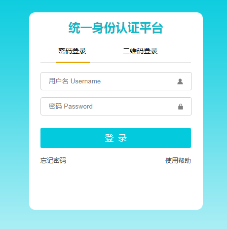 2.打开“统一身份认证平台”页面,输入账号(学号)和密码登陆系统。如忘记密码,可通过登录页的“密码找回”申请取得新密码。