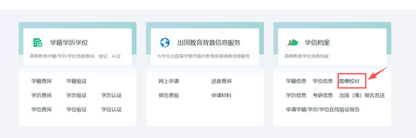 1.输入学信网的网址,点击首页的图像校对或者下方学信档案的图像校对。