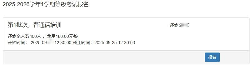注:已报名培训班学生,请勿重复参加普通话测试报名缴费。